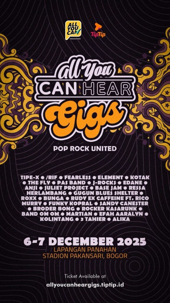 Dengan dukungan TipTip, penonton bakal dapetin pengalaman lengkap: dari pembelian tiket, akses acara, sampai kenyamanan di lokasi. Tiket presale sudah bisa dibeli mulai 8 Oktober 2025 di allyoucanheargigs.tiptip.id dan aplikasi TipTip, mulai dari Rp125.000 (kuota terbatas).
