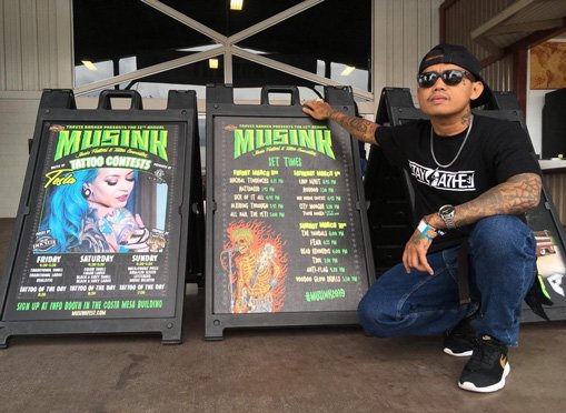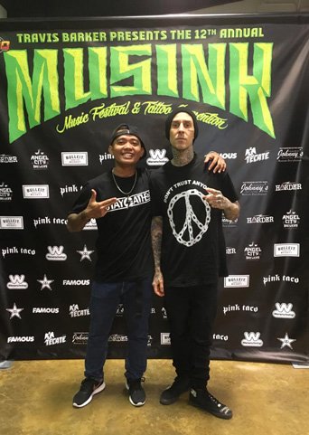 Puncaknya? Skill tattoo artist-nya yang bawa dia ke Amerika, dapat undangan ke acara MUSINK yang dihelat sama idola masa kecilnya: Travis Barker (Blink-182). Dan boom! Kesempatan langka itu datang—Fandem bisa ngobrol, bercanda, dan foto bareng langsung sama Travis Barker. Sebuah momen yang nggak pernah dia bayangin saat pinjam kaset di bangku SMP.