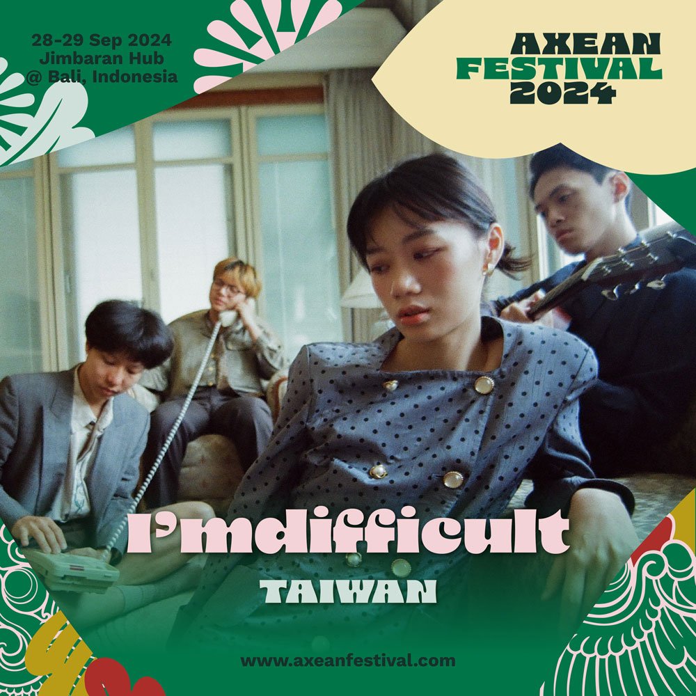 Tiga band Taiwan dijadwalkan tampil di panggung AXEAN 2024 Bali yang akan digelar di Jimbaran Hub pada 28 dan 29 September 2024. Tiga band itu adalah I’mdifficult, The Chairs, dan The Dinasour’s Skin.